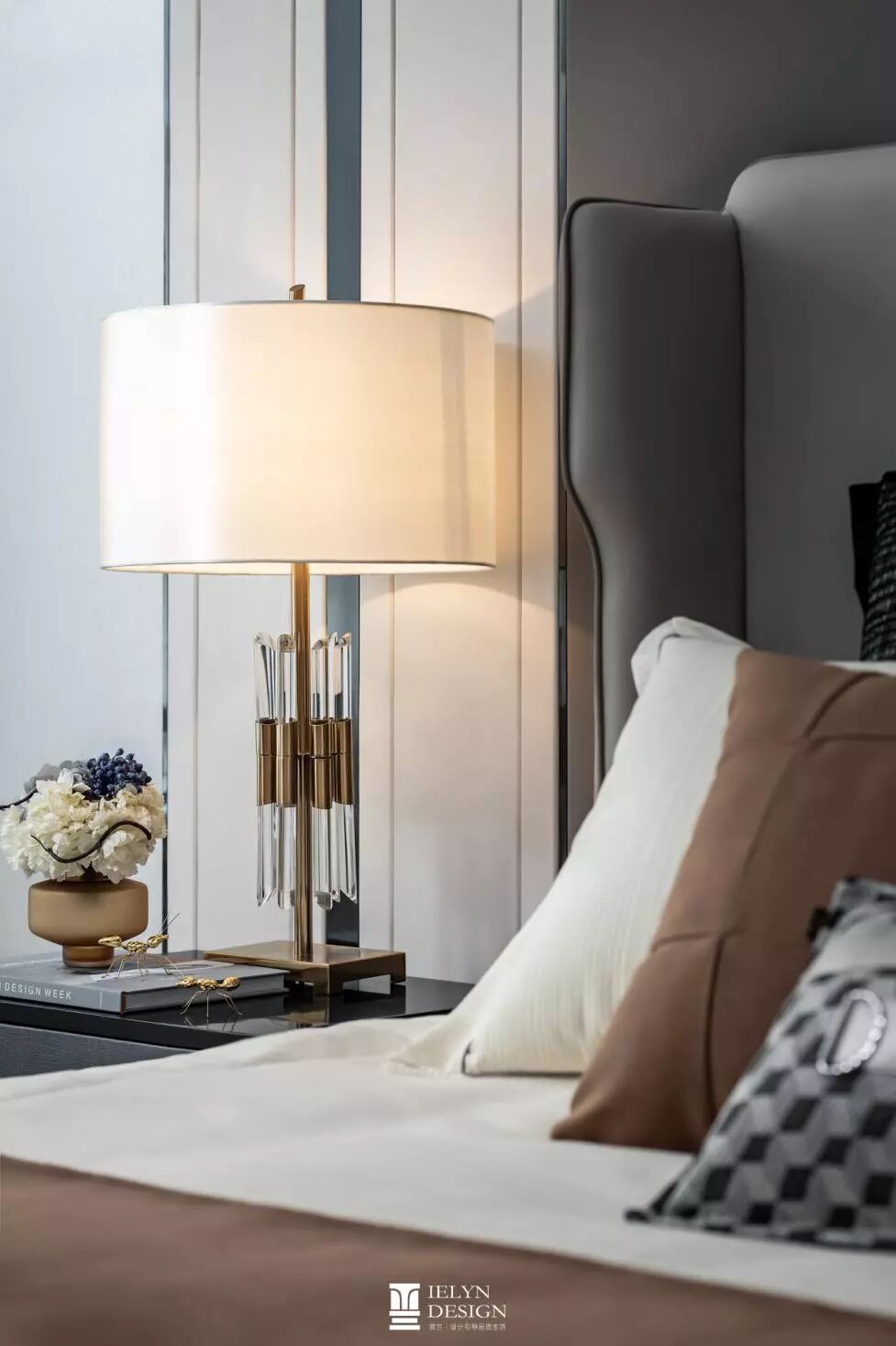公区的静谧进入卧室,演变为更温和的气息,驼棕、月灰色系递进式的传递暖流,床品落落大方,更关注纹理带来触感上的良好体验,暖暖灯光代替炽烈,为主人家的休憩做好铺垫。