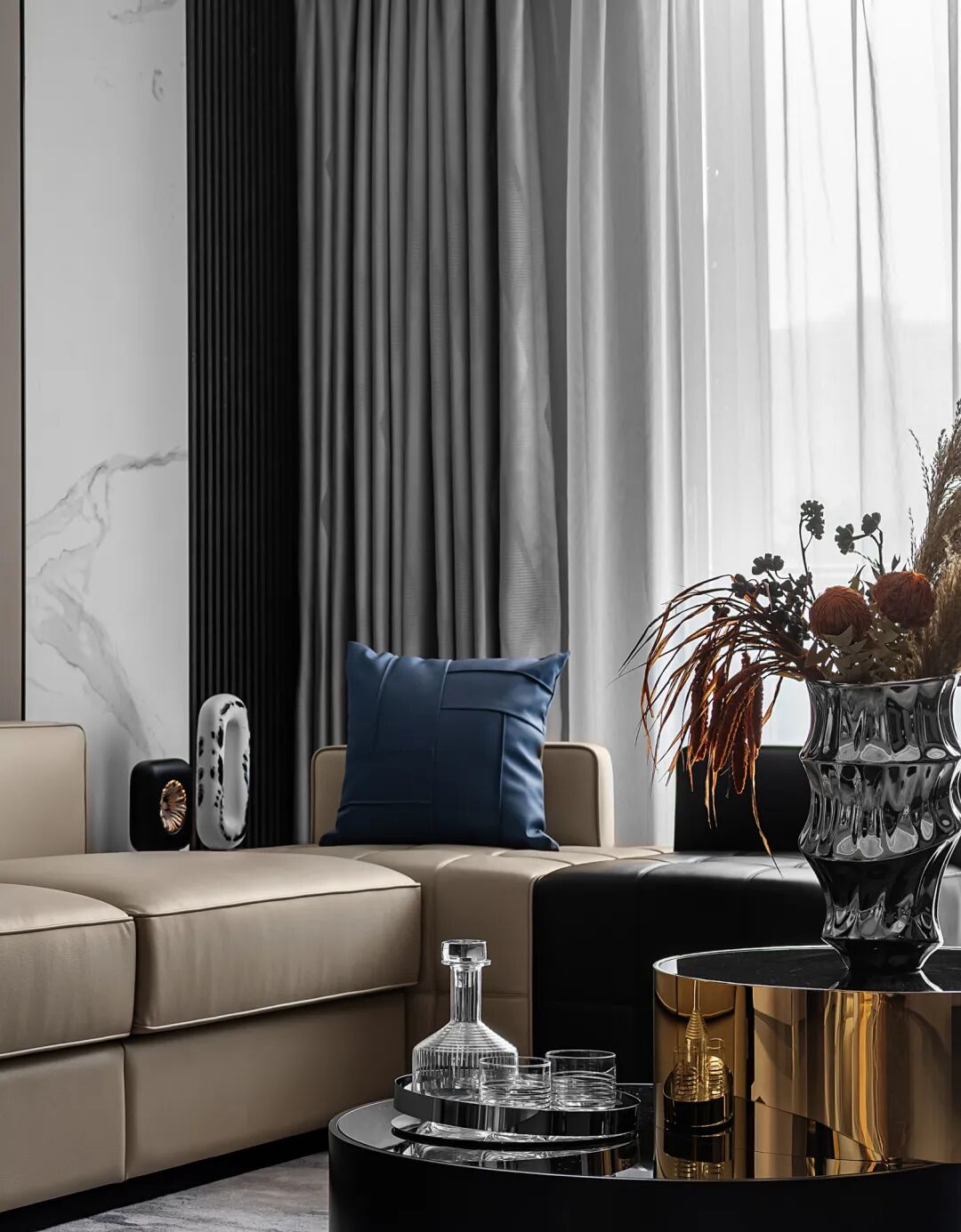 植物随着四季轮转而开花结果,生长凋谢,其 “质” 生于天然,随着人类文明与科技的进步,我们对生活品质的要求也与以往大有不同, 高品质又舒适的生活在人们心中也逐渐开始萌芽。 在此次设计中,现代轻奢除了低调精致的奢华感之外,同时也兼备了 实用性与舒适感。其中温暖的橙黄色意为美好舒适的生活。