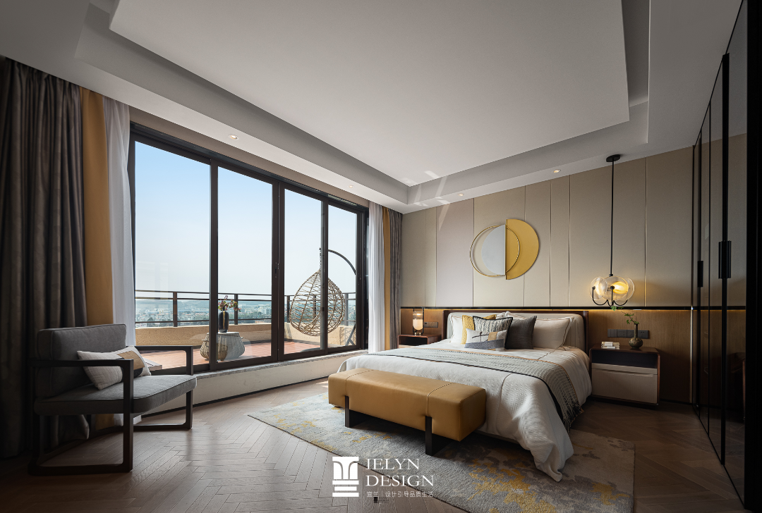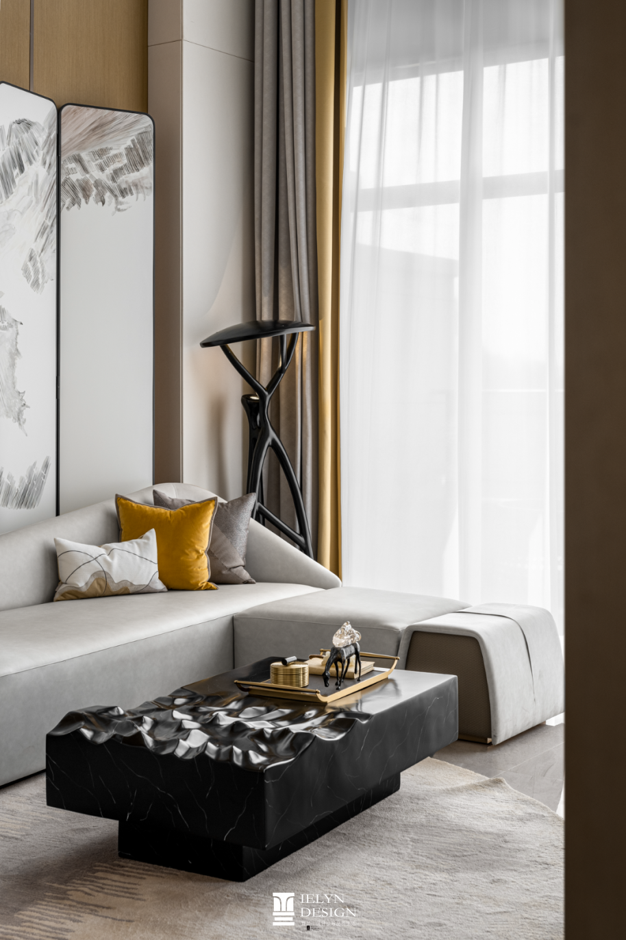 将现代奢华与中式古典雅相互贯通,深邃而迷人,将中式情怀转变为简洁精炼的设计风格, 令现代混搭的艺术陈设与设计风格形式相辅相成,进一步对居住者的精神做出回应。