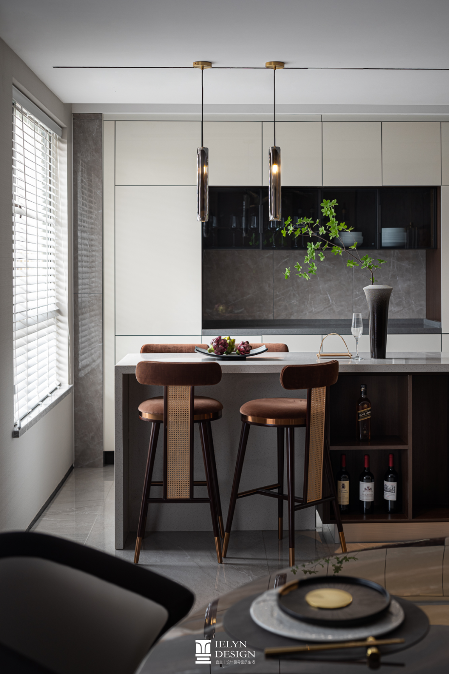 将现代奢华与中式古典雅相互贯通,深邃而迷人,将咖色反复利用,显得低调沉稳又有悠远绵长。从功能到细微末节的习惯,为居住者营造一个合理利用,有丰富价值的空间。