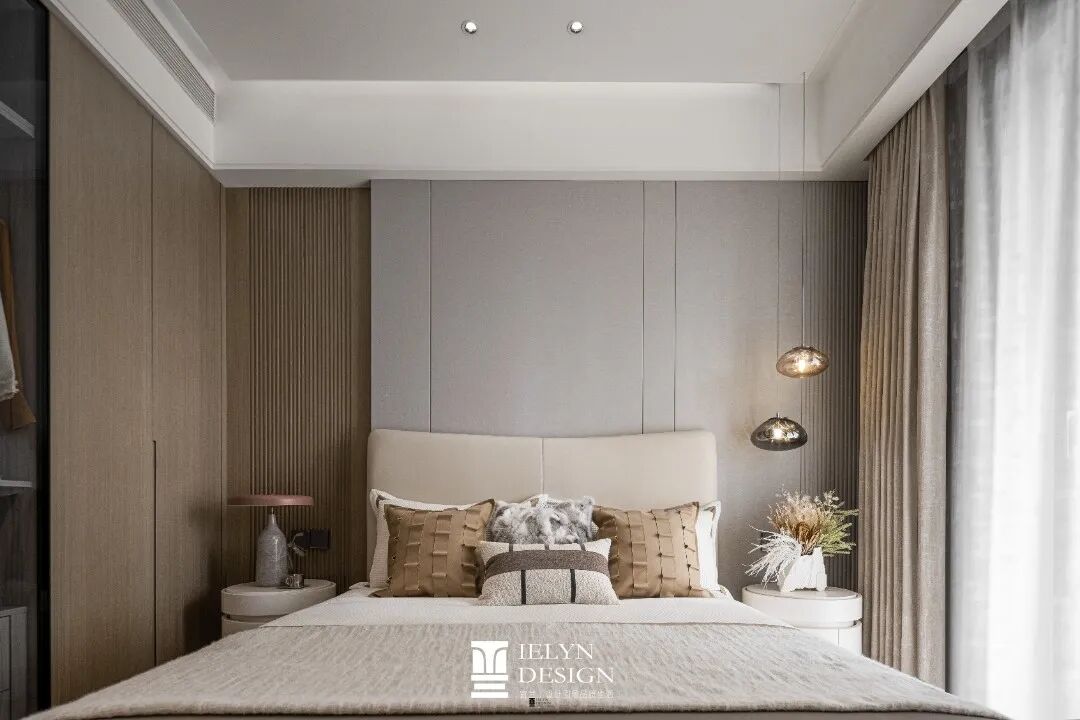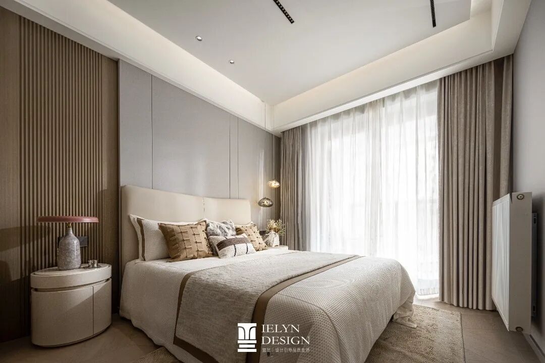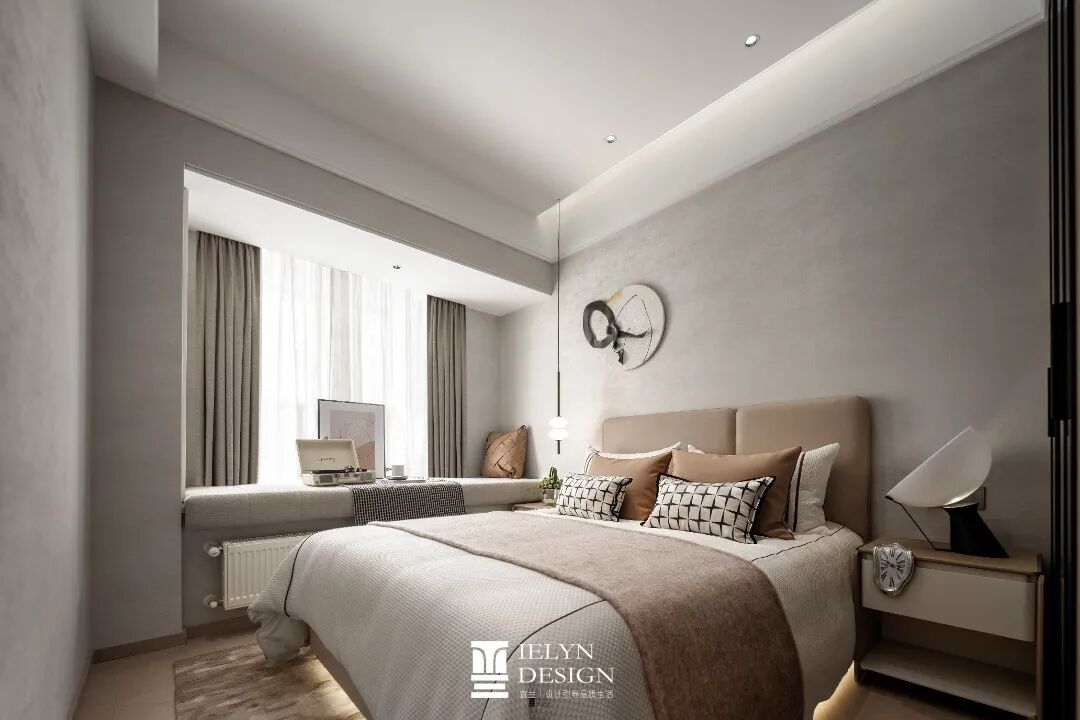 采用简约的线条, 主卧灯的设计搭配,