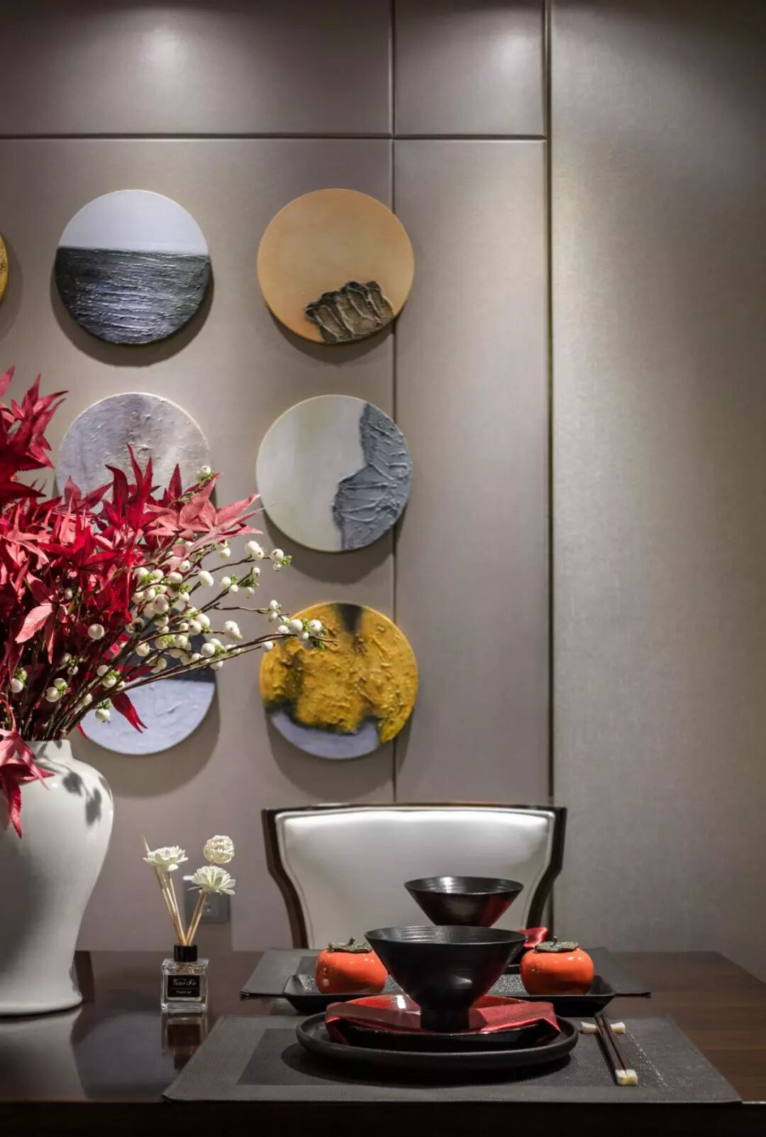 红肥绿瘦,在餐厅这一方画布上,设计师大胆着色,纯净而富有活力,却又不失中餐礼仪的尺度,筷枕是筷子的礼节,静置在黑陶海碗旁等待主人家的三时三餐。