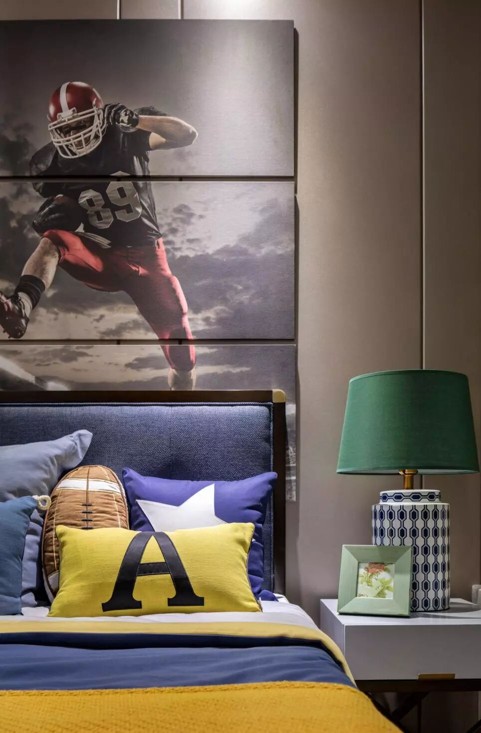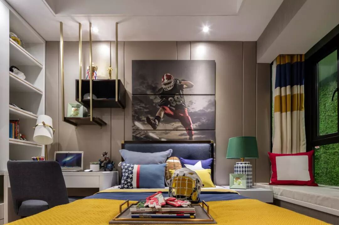 儒家教育讲究因材施教,设计师并不一味的彰显个性,而是让家中的每位成员都有自己的空间,知其所爱,予其所爱,闪亮的橄榄球帽似乎刚被放下,房间物什干净利落,小男生的生活近在眼前。