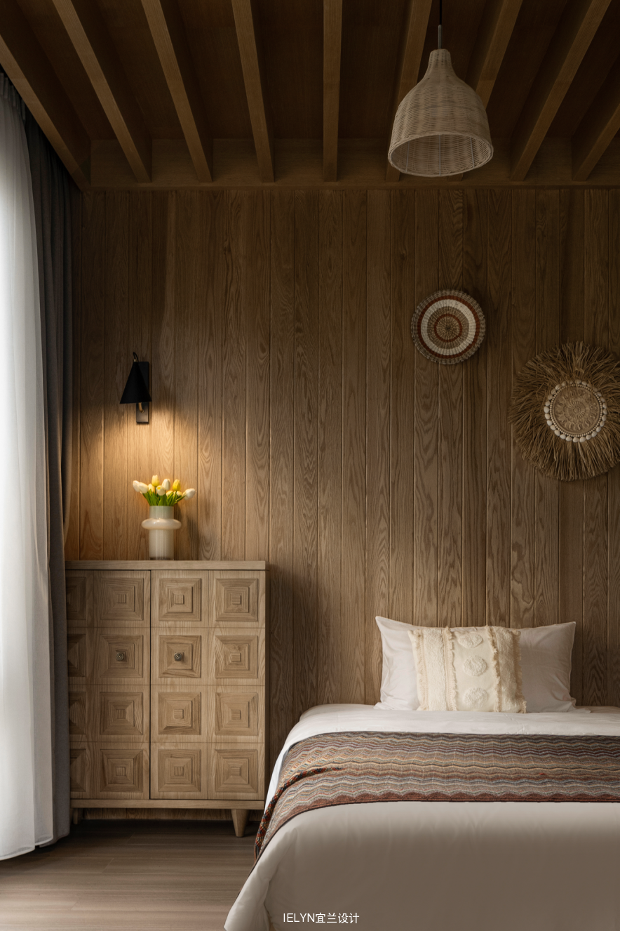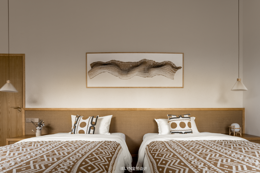 结合当地风土风情,空间木质主色调,打造空间的层次感,适当的留白增加空间的艺术性,让空间更具有灵动性。