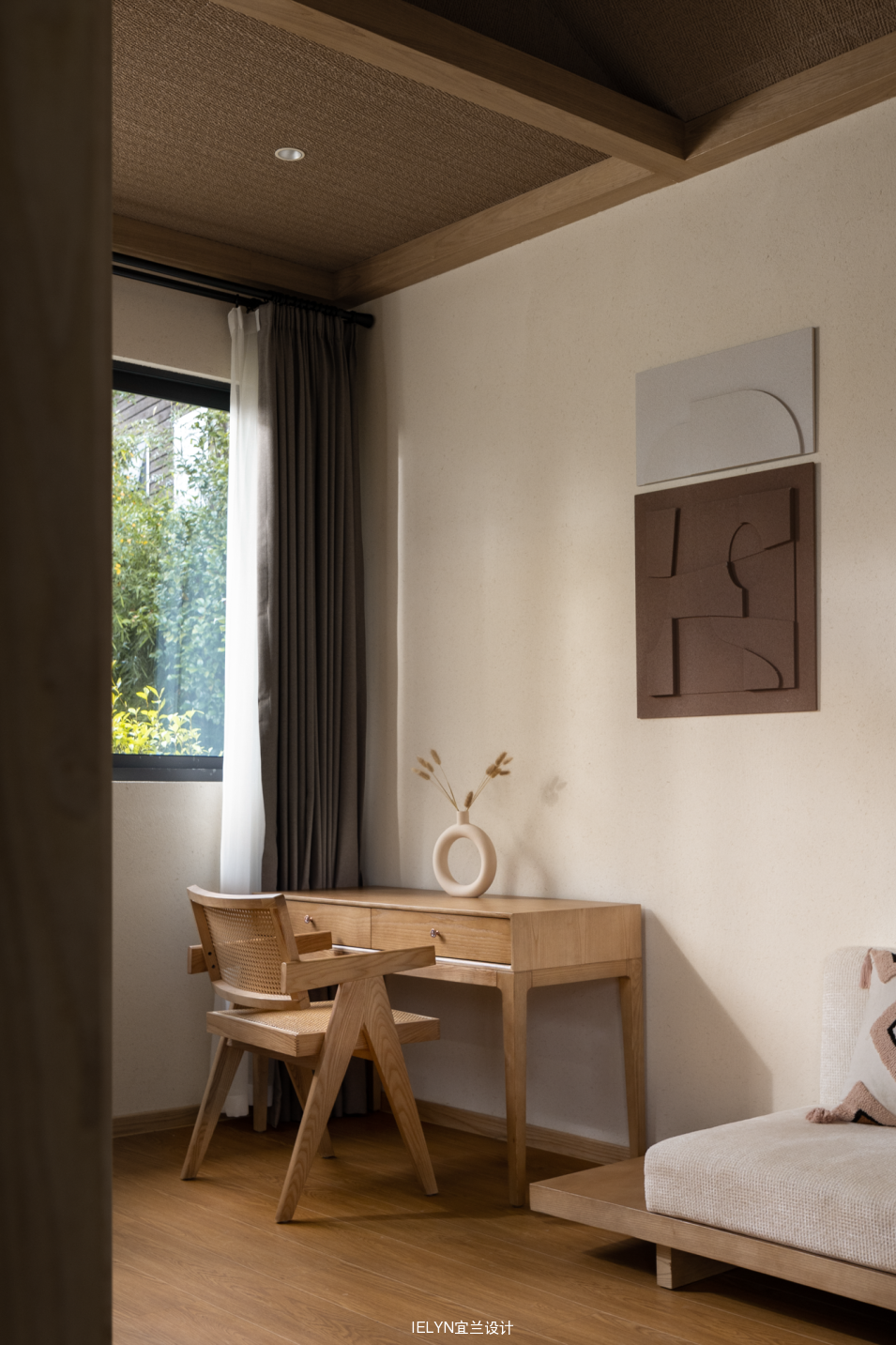 柔和光线通过拉吉屏风,照入室内,