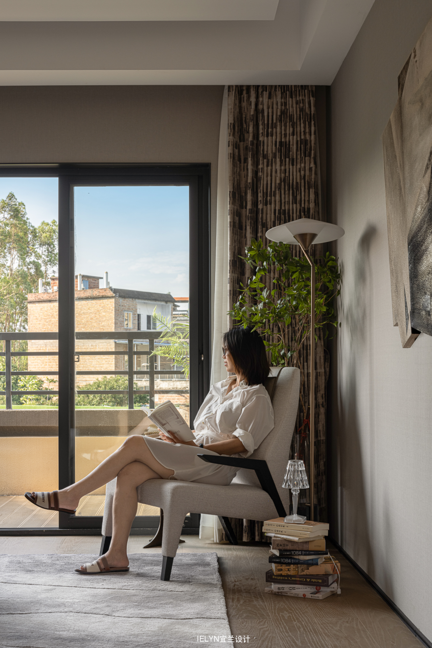 大面积的落地窗带来阳光,为阅读提供了便利。