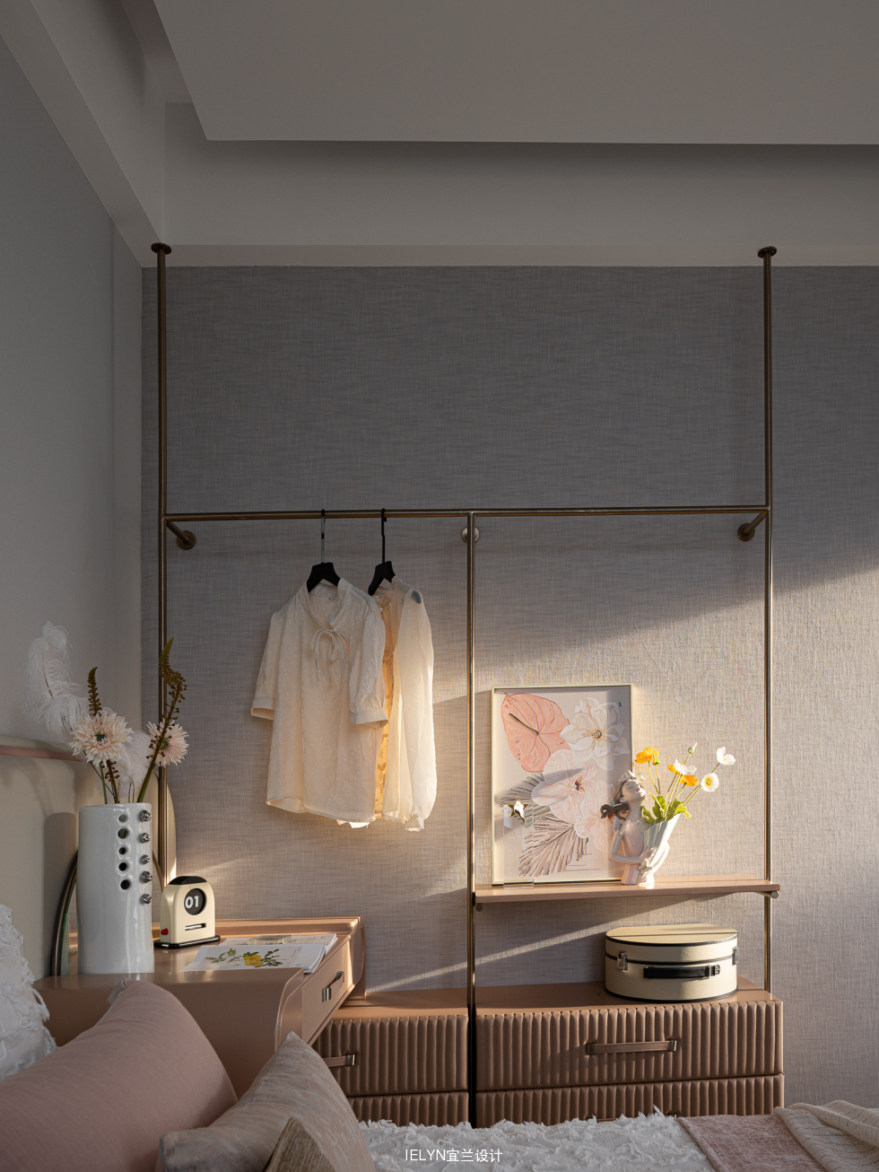 额外设有衣架,满足女孩子精致的生活标准。