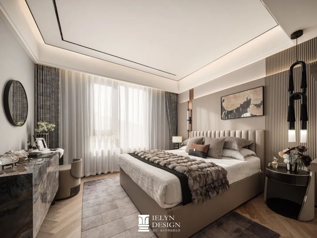 整体空间纹理,色彩简洁,形式简约,将优雅时尚的质感结合现代轻奢的高品质,展示精致高端的生活态度,体现生活的情调和舒适。