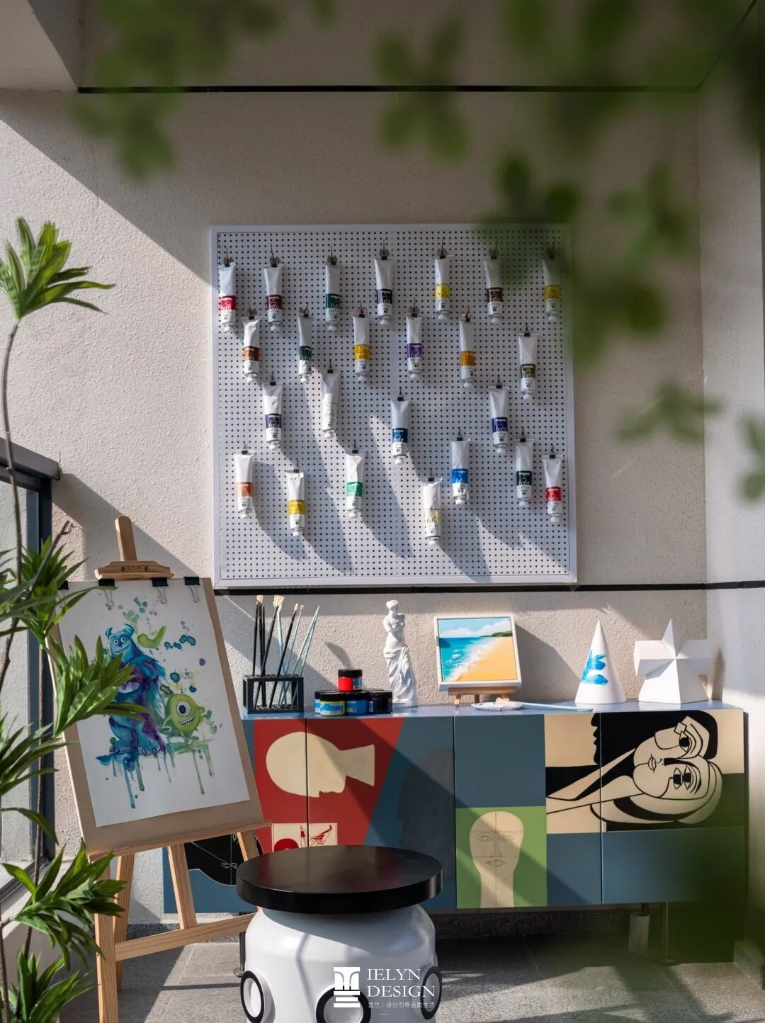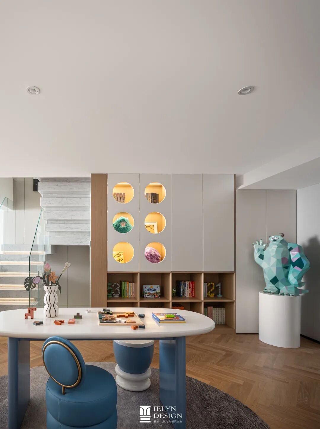 儿童区,其中有绘画区,亲子书吧,手工区等,以细腻的细节刻画丰富的空间氛围,温暖包裹感十足的座椅,用柔软的色调,营造孩子们的专属天地。