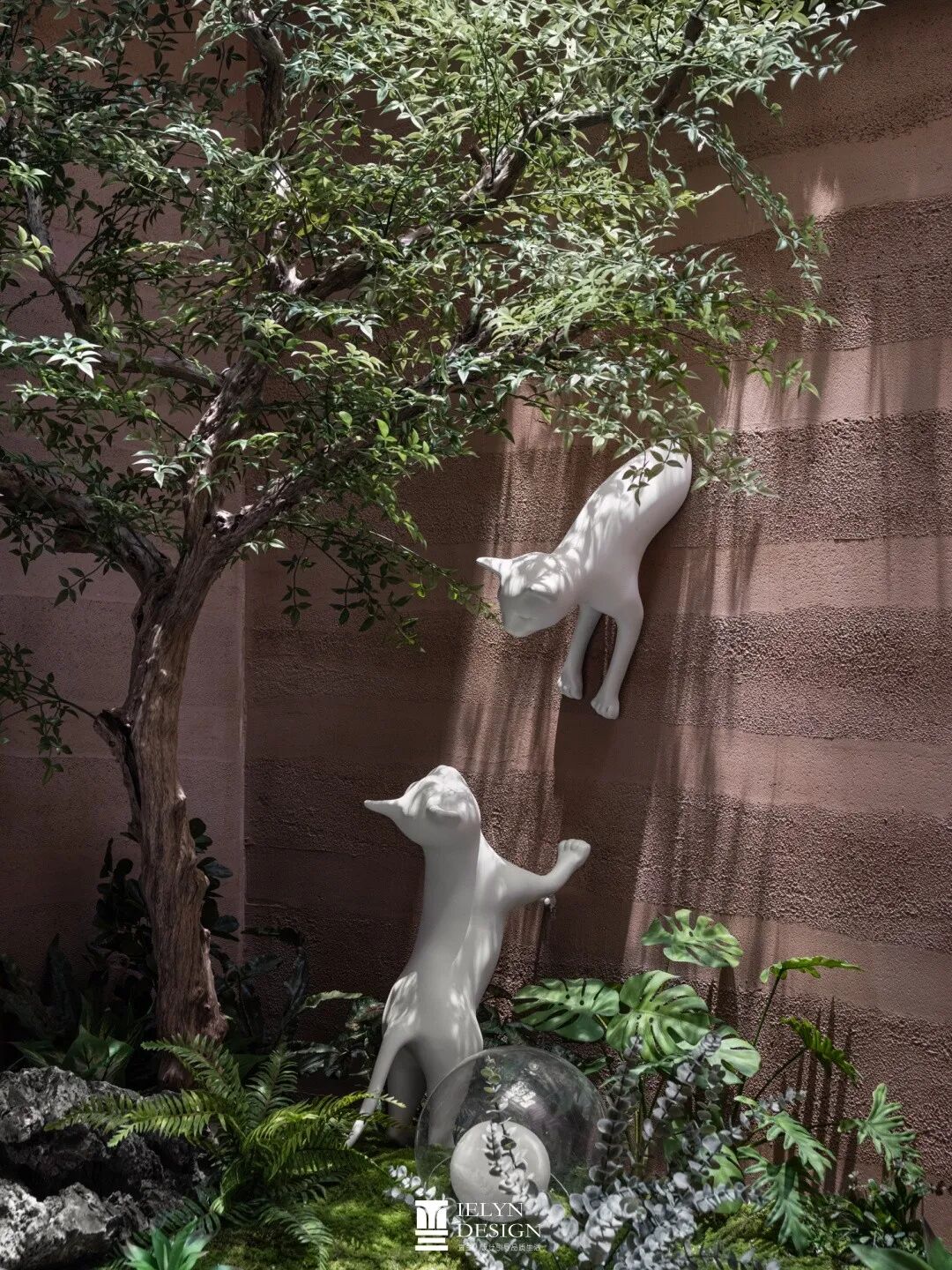 景观区,墙边的绿色植物给空间增添了活力。植物的存在让人感受到大自然的力量和生命的韵律,将室内与室外连接起来,打破了封闭感,给人带来一种轻松、自然的氛围。