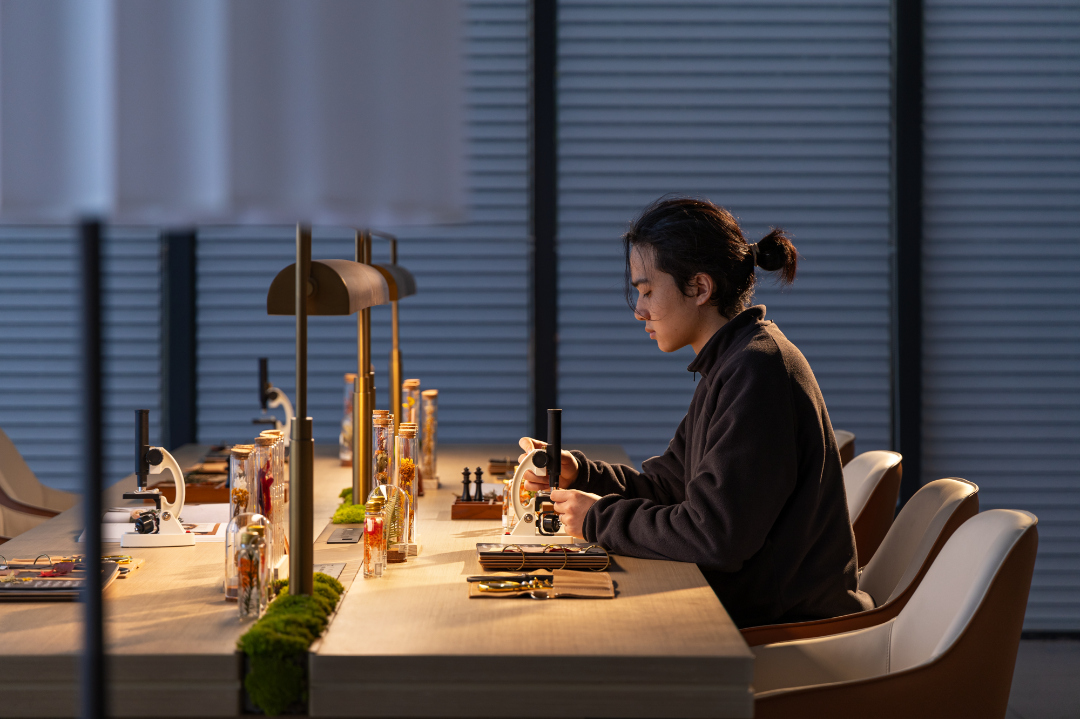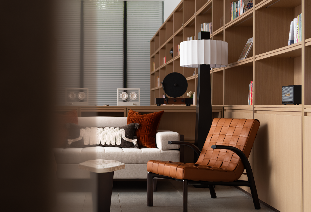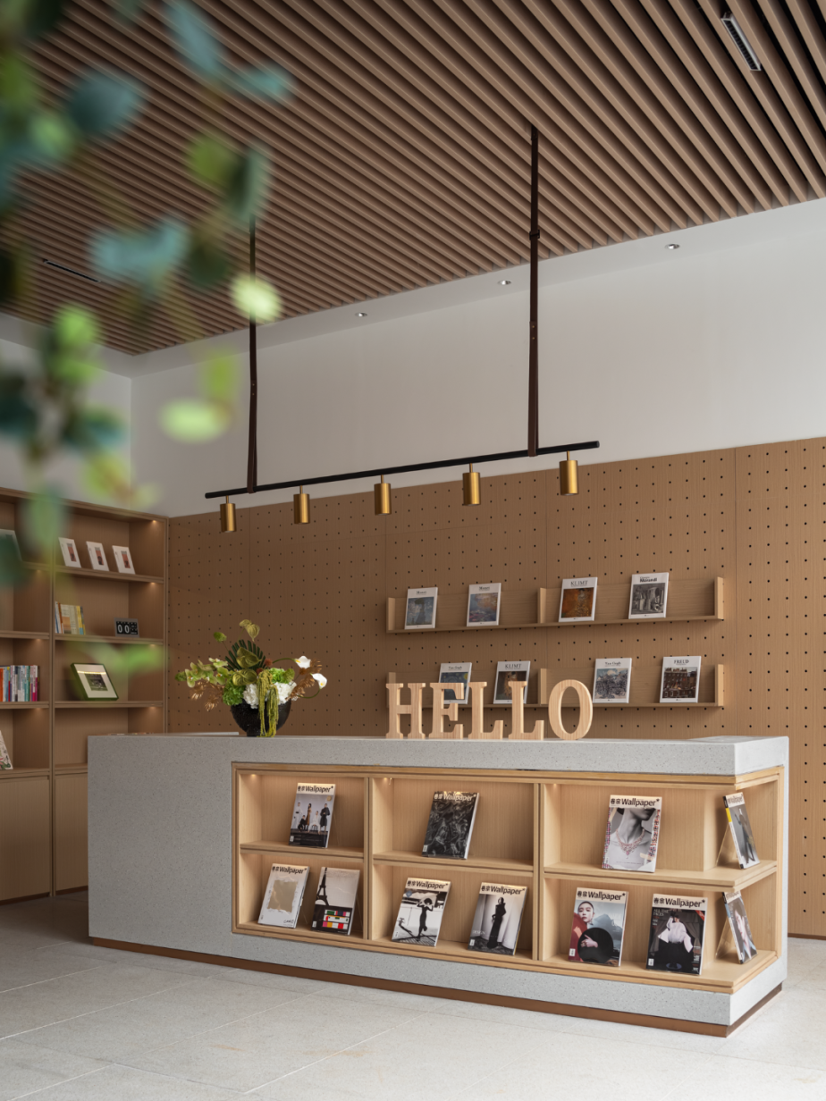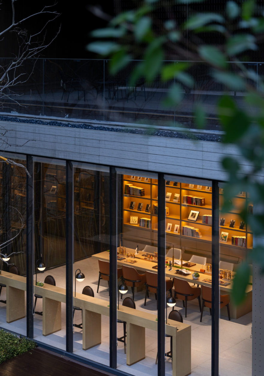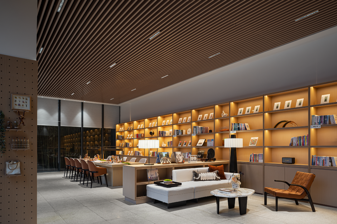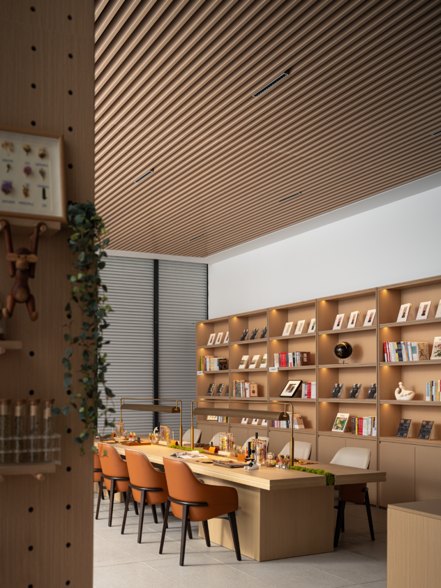 营造自然且温润的空间,巧妙将陈列的书架与现场结合,组合不同组合形式的就座可能态,人与人的活动和谐触碰,产生交互仪式感。