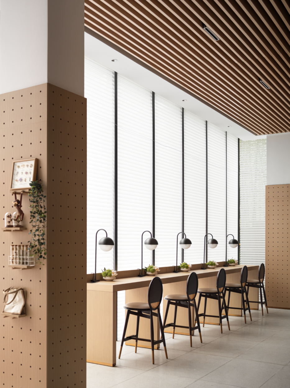 设计中的吧台座位, 采用因地制宜的布局方式和人性化的结构特征,营造优雅的氛围,提供亲切宜人的空间感受。并整合建筑空间关系,增添吧台座位,为大家提供不同层次和形态的休闲活动与交往场所。