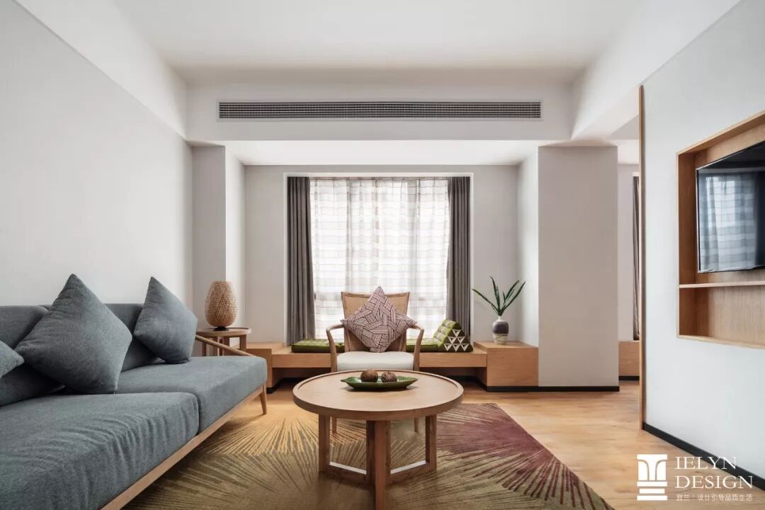 在空间处理上,设计偏向于打造东南亚风格,室内以纯色墙身和木质家具为基调,嵌入精美布艺点缀异域风情,细腻柔和的材质与色彩,注重细节与使用的便利,而非强调设计的抢眼与特殊,让人既不会感受到空间的压迫,完全地放松与融合,用时又与文化相玩味。