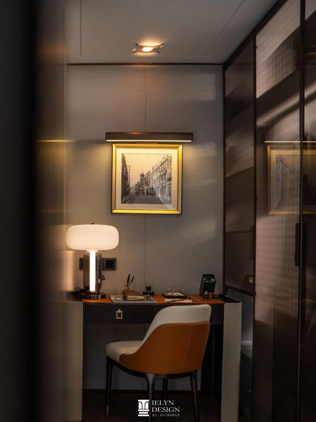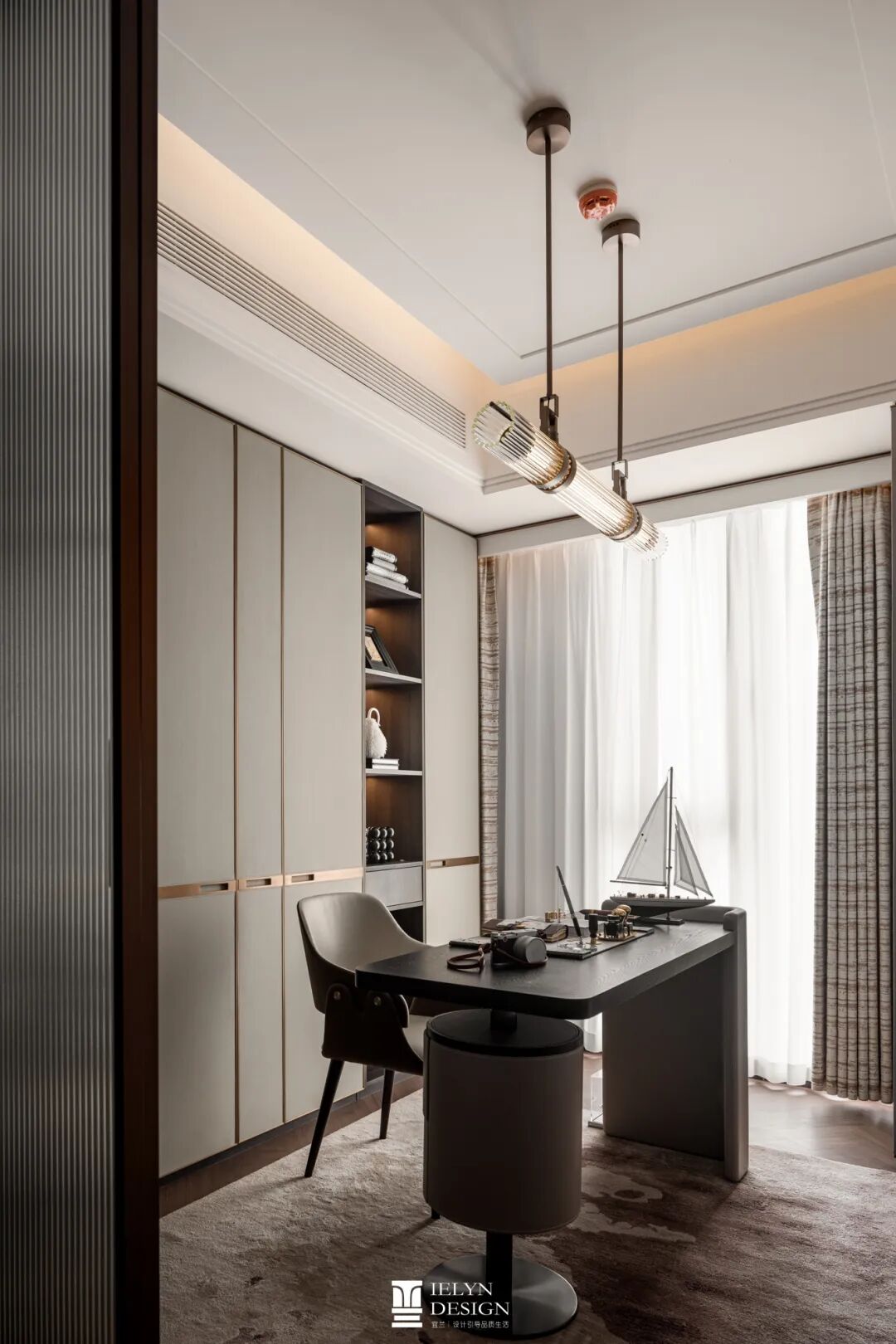 书房,空间为沉稳的色彩搭配着明亮的光线,从不同的层面完美诠释着低调与奢华的气质,展现出精致品位和层次。