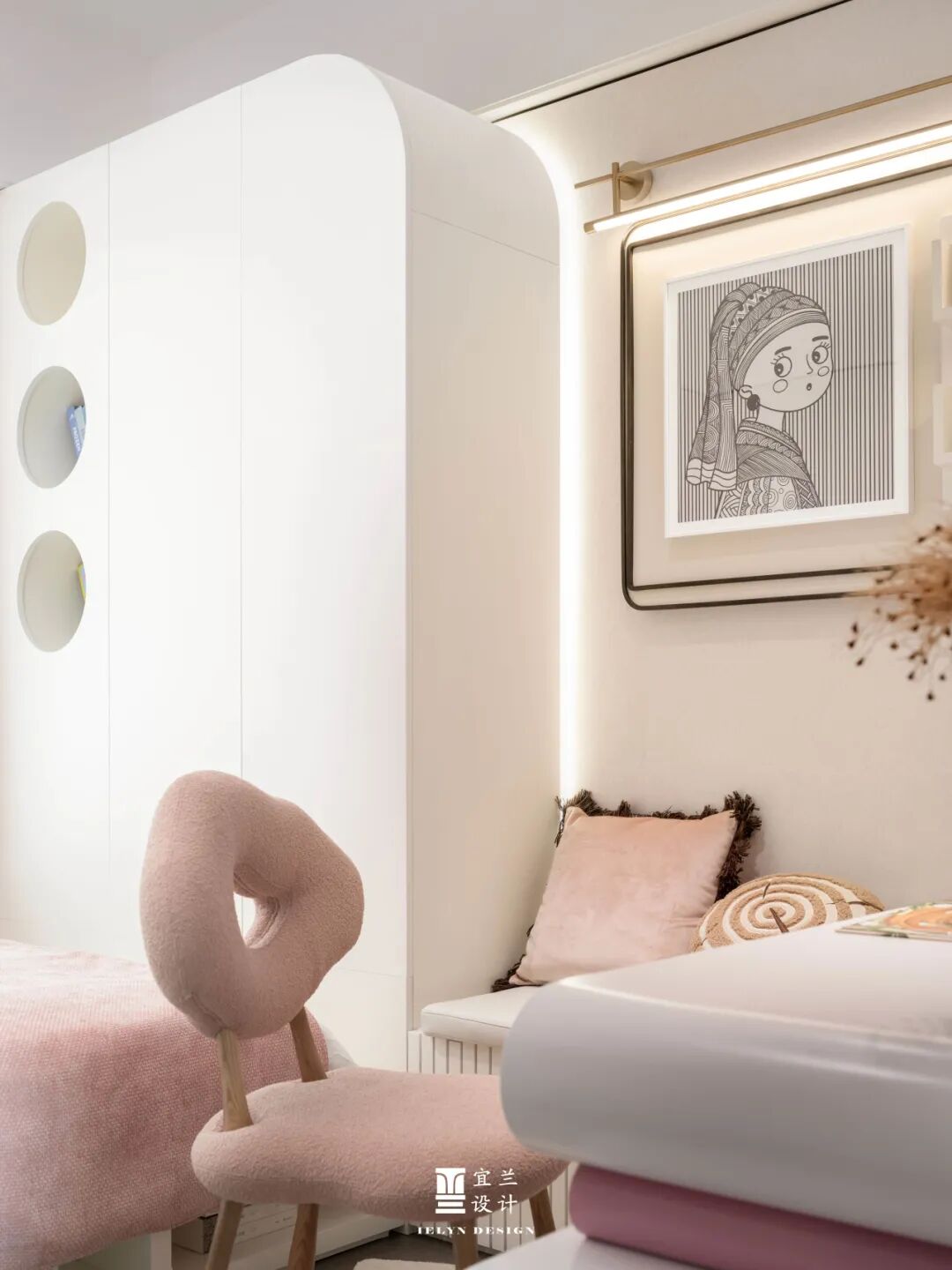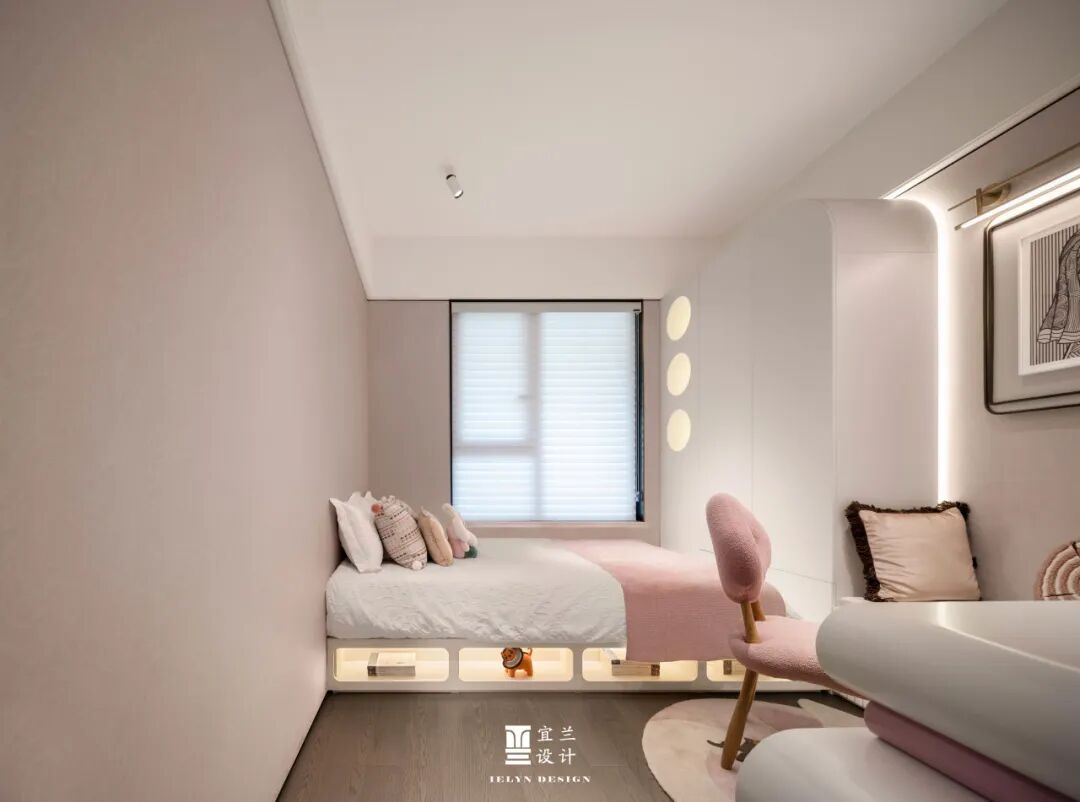 宜兰设计软装,将童趣与温馨完美融合。柔和的粉色与纯净的白色交织,营造出梦幻般的空间。墙面的圆形装饰与独特的椅子造型,激发无限想象。在这里,每个角落都藏着惊喜,每个细节都讲述着故事。