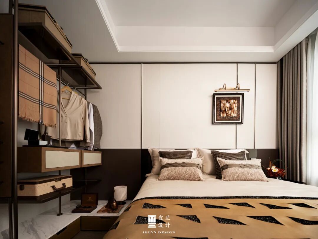 在卧室区域,设计师同样注重细节的打造。床头的装饰画与床品的选择,都透露着一种低调的奢华。每一个枕头,每一幅画作,都是对美好生活的向往与追求。