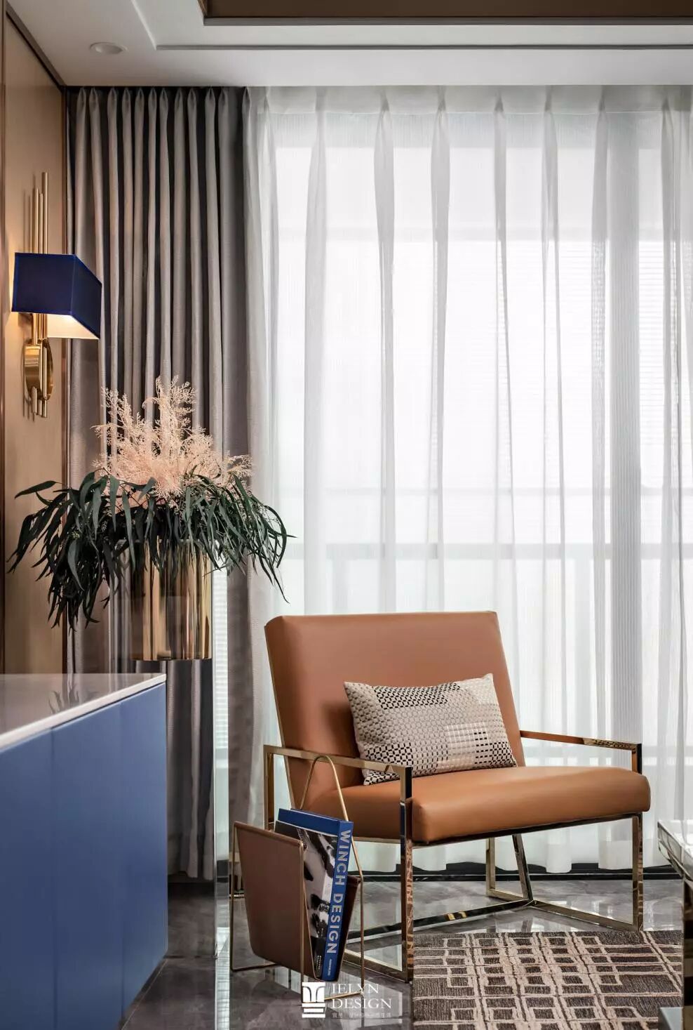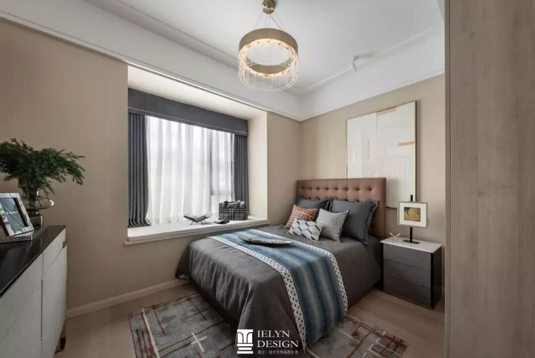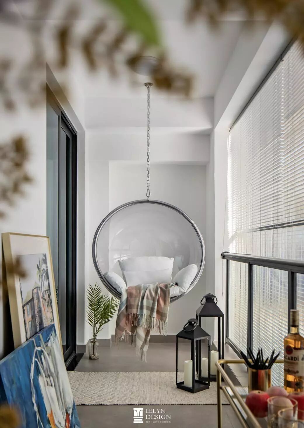 阳台联通主卧及儿卧,是空间里的休闲角。而日出碧海的意向在长辈房宛如隐在 朦胧雾气后,可以看到IELYN对不同年龄群体的理解与共情,意向随年龄段的不同而做出演变,都旨在为它们各自的主人带去一份独属的心安与慰藉。